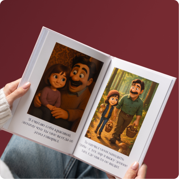Создай цифровую книгу с красочными иллюстрациями по фото близкого человека. А мы озвучим и распечатаем результат.